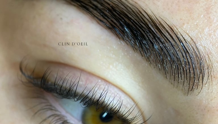 Cette technique permet de discipliner vos sourcils, d'apporter de la hauteur et, de donner un effet plus dense. Les sourcils sont plus harmonieux, le regard s'agrandit et devient plus lumineux.